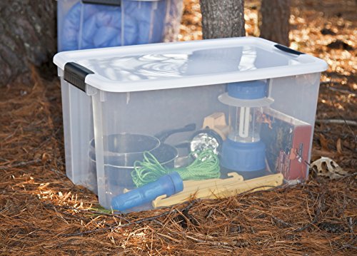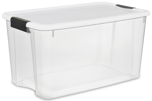 Sterilite 19889804 70 Quart/66 Liter Ultra Latch Box, Clear with a White Lid and Black Latches, 4-Pack