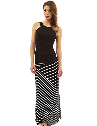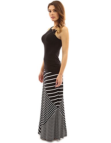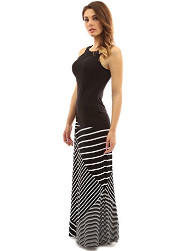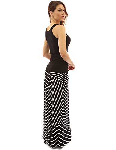 PattyBoutik Striped Geometric Paint Full Length A-Line Maxi Skirt. Model in pictures is 5 feet 8 inches (173cm) tall wearing a pair of flat sandals.
