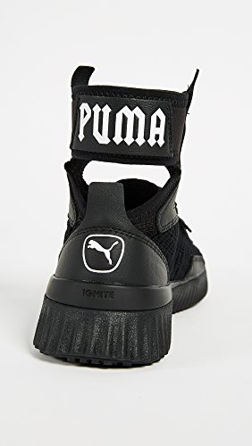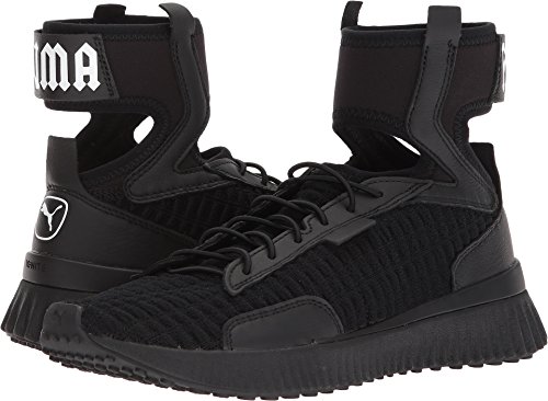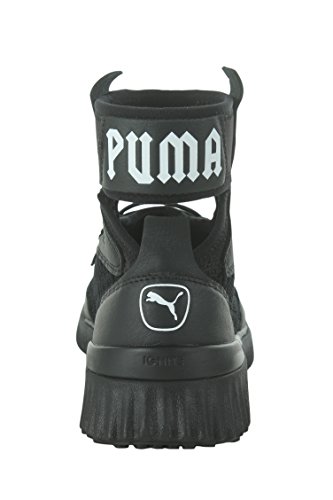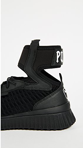 Studio : PUMA Publisher : PUMA Binding : Apparel Product Description Sneakers meet stiletto heels.PRODUCT STORYMost likely to break the rules, Rihanna returns as PUMA Creative Director for her third season. Varsity jackets are reimagined with exaggerated dimensions. The latest FENTY PUMA by Rihanna collection takes classic school uniforms and dismantles them. Preppy meets provocative. Unexpected cutlines, premium materials, and chenille patches abound.Ready to be schooled? Then gear up, step up, and serve some wicked attitude. This fully knitted sock construction is an easy to wear mid cut trainer, taking cues of the hi knitted trainer. Finished with the traditional lace up construction, can be worn in many different ways and is a great easy on/off sneaker. The midsole supplies extra support with IGNITE foam.DETAILSRubber outsoleIGNITE midsole for extra supportFully integrated knitted sockPUMA cat logo on the heels. 0