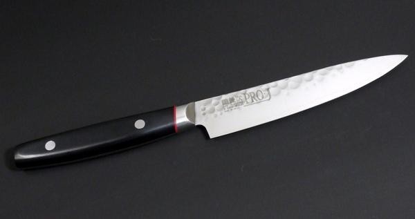 ブレードの表面に美しい模様の「鎚目鍛造ブレード」加工を施した包丁です。日本らしさを残した直線的なフォルムに、エレガントな曲線を加えたデザインに。ハンドルは人間工学を考えた寸法関係にしているので、非常に持ちやすいデザインです。 |