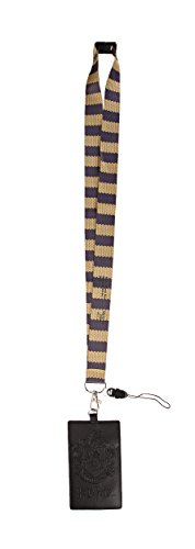 Binding : Apparel Product Description - ID holder features an embossed Hufflepuff crest design. - Keeps your information handy at school, work travel and conventions. - ID holder has 2 pockets and clear protective window. - Also great for holding keys. - Lanyard has a 17.5 inch drop with snap enclosure; badge holder measures approx 5 x 2.75 inches. 0