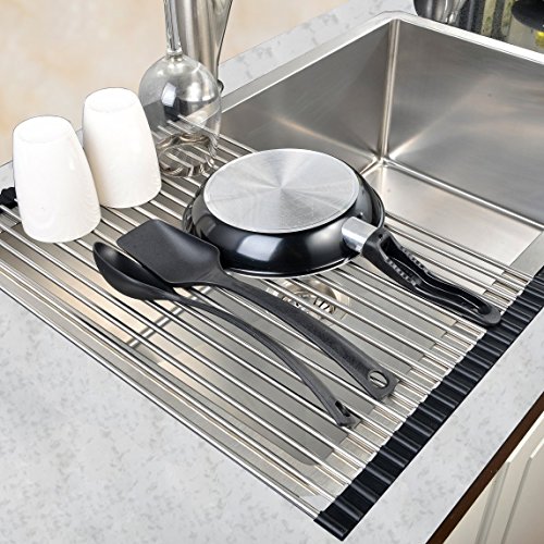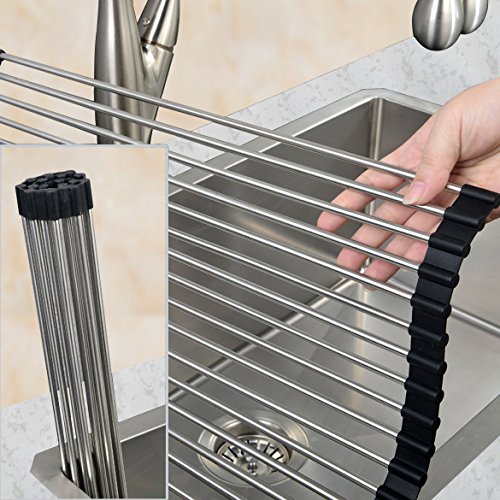 VAPSINT Brushed Nickel Stainless Steel Folding Black Roll Up Dish Drying Rack