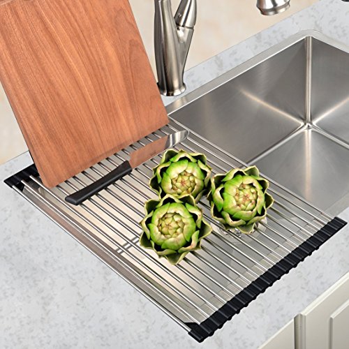 Saving Space: Unroll the dish rack over the sink to provide you more space for your dishes, glassware or pots and fruit and so on. Rolls up for easy storage