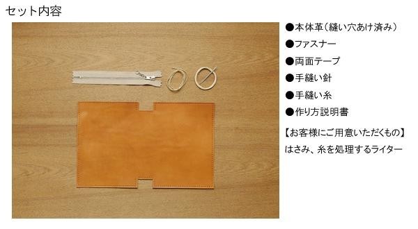マルチに活躍できるポーチを作れるキットです。革は使うほどに味わい深くなるコンビヌメ革を使用。縫い穴はあけ済みなので、どなたでも簡単に手縫いをお楽しみいただけます。 |