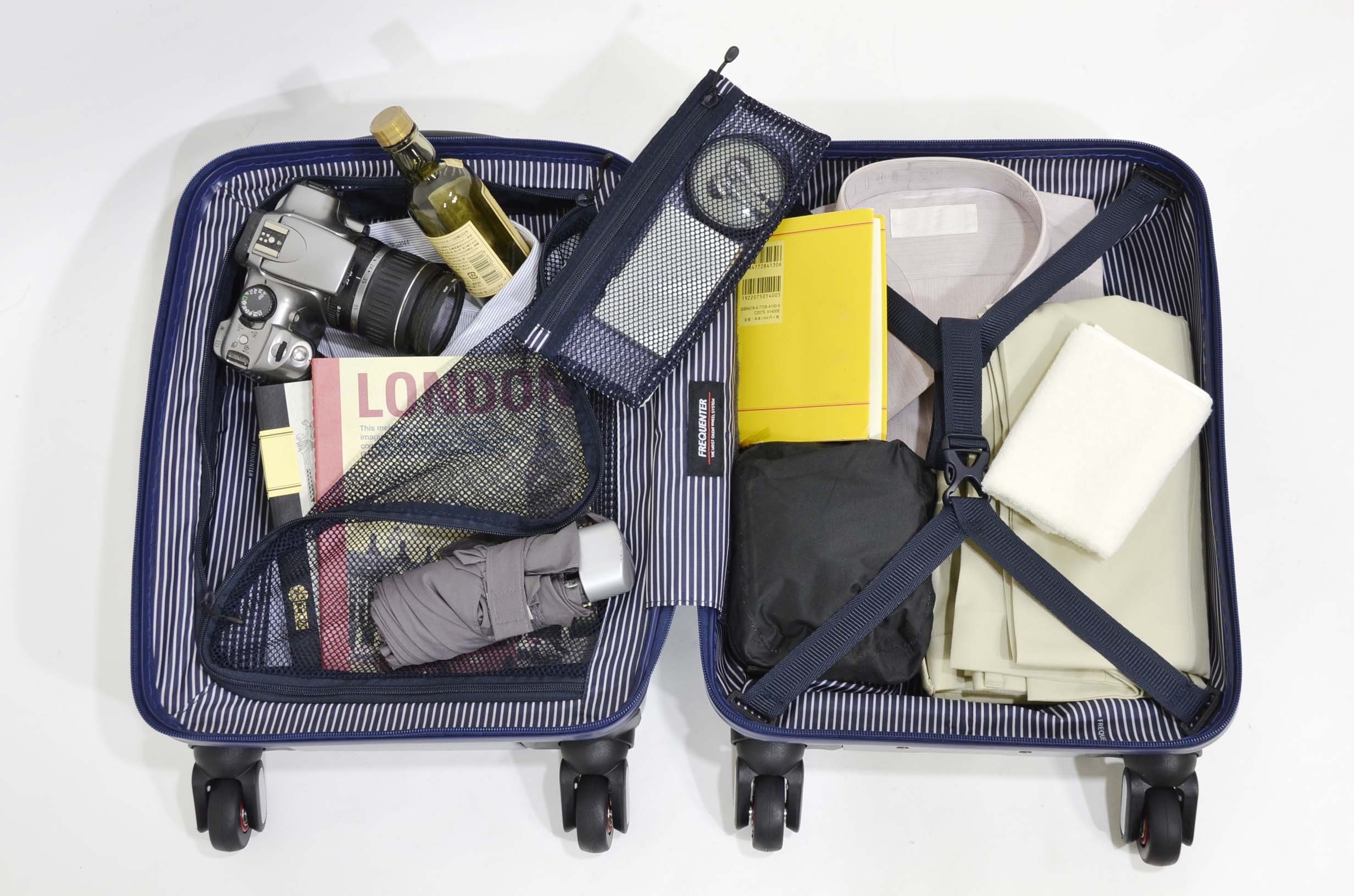 FREQUENTER (Furukueta) running noise of a rugged and uncomfortable suitcase, a comfortable ultra-quiet suitcase realizing high silence due to patented structure in which inner and outer rings rotate, respectively.