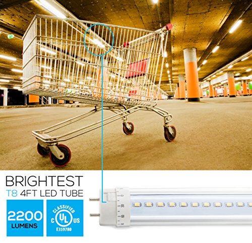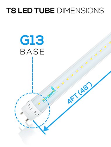 Hyperikon 4-Pack of T8/T10/T12, 4ft LED Light Tube [Rotatable End Caps], 18W (40W equivalent), 2200 Lumens, 3500K (Soft White Glow), Clear Cover, Garage, Warehouse
