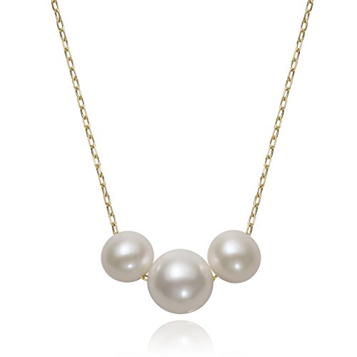 Grace yourself with the feminine charm of this delicate necklace featuring three glowing AA quality white genuine cultured freshwater pearls secured on a 14k yellow gold diamond cut cable chain. Graduated in style, this pearl necklace is made with the kind of quality that is guaranteed to stand the test of time; AA quality pearls are round in shape, well-matched, high-luster, and free of any blemishes or markings. With a design simple enough to wear over and over again, this piece is sure to become a staple in your jewelry collection.Feature