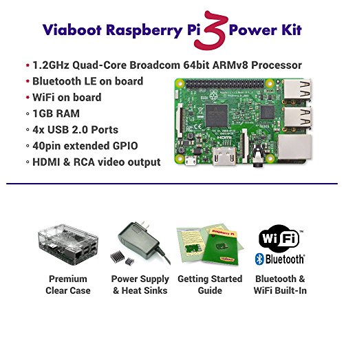 Viaboot Raspberry Pi 3 Power Kit — UL Listed 2.5A Power Supply, Premium Clear Case Edition