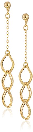 14k yellow gold drop earrings featuring chain with three interlocking-loop drops
