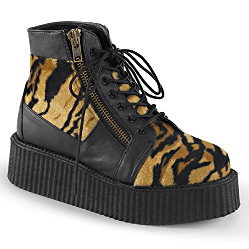 Demonia V-CRE571_BVL-TPFR-8 2 in. Platform Lace Up Creeper Bootie with Exposed Zipper, Black, Size 8