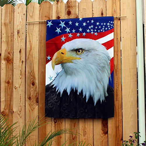-. Feature : Outdoor yard flag with a red, white, and blue American Flag style stars and stripes theme with a beautiful Bald Eagle representing the freedom and spirit of the U.S.A. / Beautiful garden flags for the sP.R.Ing and summertime - Decorate your door, porch, patio, yard, balcony, backyard, wall, and more. / This beautiful Eagle Garden Flag is great for Memorial Day, Fourth of July, Veteran's Day, Patriots Day, and throughout the sP.R.Ing and summer months / Big and festive 28 inch by 40 inch design is a perfect size to wow all your neighbors - made of durable and weatherproof polyester / Show P.R.Ide for our great nation and make a bold statement with this Americana garden flag!