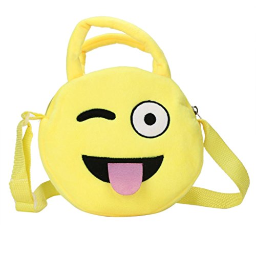 -. Feature : 18*18*5CM/7.08*7.08*1.96"(L*H*W) / Material:Villus+Polyester / Closure type:Zipper / Pattern type:Cartoon Emoji / Package include:1*Kids' Emoji Backpack