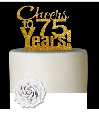 CakeSupplyShop Item#075CTA - 75th Birthday / Anniversary Cheers Super Gold Glitter Sparkle Elegant Cake Decoration Topper