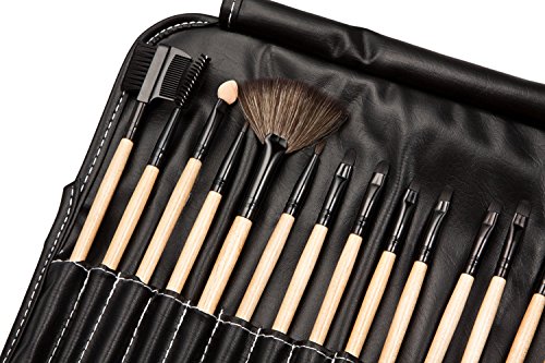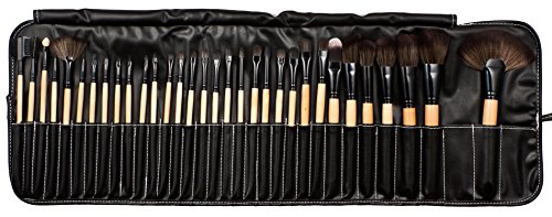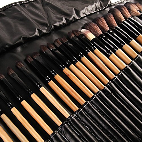Xiaoyu 32PCS Mini Professional Cosmetic Makeup Brush Set Kit with Synthetic Leather Case - Black & Wood