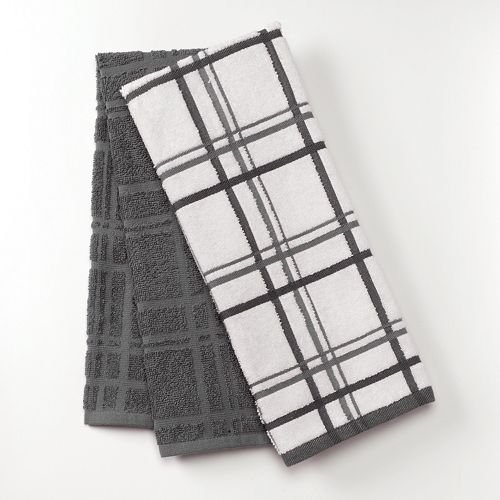 Food Network Plaid 2-pk. Antimicrobial Kitchen Towels (Dark Grey)