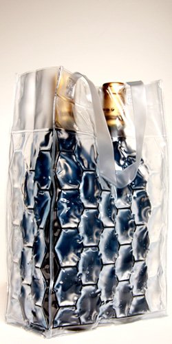 -. Feature : Gel Filled Wine Tote / Made of durable PVC Plastic / Dimensions 3.75" X 3.25" X 9.75" / Use over and over / Tote can fold up flat in your purse or backpack