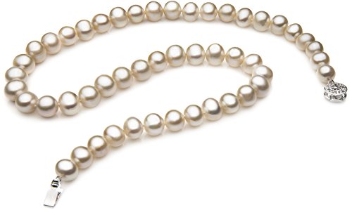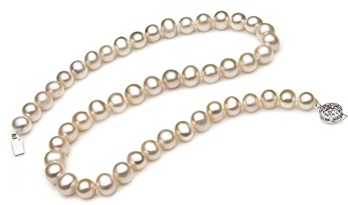 This gorgeous white necklace is created from genuine high quality freshwater cultured pearls. Carefully grown over many years, they have been gently harvested and matched to the strictest of standards. You will enjoy the versatile 7 to 8mm size - a perfect size for both business and pleasure. This value priced A quality necklace features very nice AA luster, naturally beautiful off round A shape and A body. Your necklace will be carefully packed and shipped to you in an elegant jewelry box and accompanied by lots of free extras. If you choose, we would be delighted to gift wrap your purchase and turn this necklace into an unforgettable gift.
