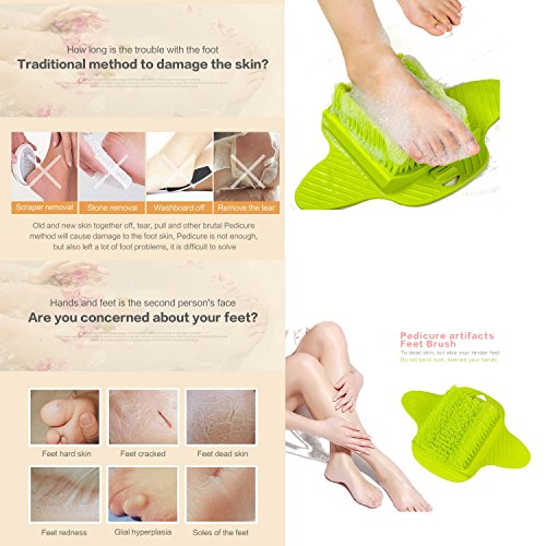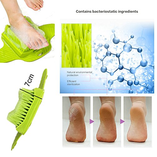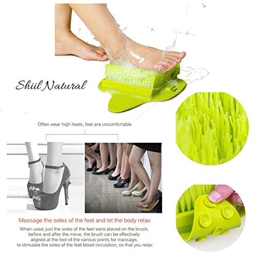 - FOOT BRUSH HOW TO USE: No need to bend down or try and balance. Simply place foot on top of brush and move back and forth. The foot scrubber cleanses, exfoliates, stimulates and massages your feet. Used with soap or shampoo, Strong suction cup base allows the foot scrubber to easily be attached to the floor of any shower.