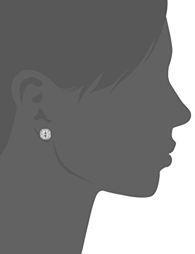 Plated sterling silver earring featuring asscher-cut Swarovski Zirconia in four-prong setting surrounded by halo of smaller round stones