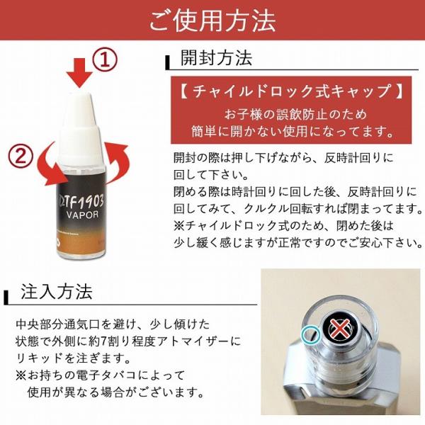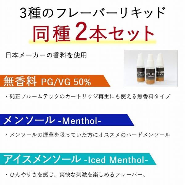 ■商品説明■・電子タバコ用リキッドフレーバー同種2本セット・リキッド容量 : 1本10ml・日本メーカーの香料を使用・タール/ニコチン0【メンソール Menthol】【アイスメンソール Iced Menthol】【無香料 PG/VG 50%】■開封方法■・お子様の誤飲防止の為、簡単に開かない仕様です。・キャップはチャイルドロック式になっておりますので、キャップを下に押しながら反時計回りに回して開けてください。・チャイルドロック式のため、閉めた後は少し緩く感じますが正常ですのでご安心下さい。■リキッド注入方法■・中央部分通気口を避け、少し傾けた状態で外側に約7割程度アトマイザーリキッドを注ぎます。※お持ちの電子タバコによって、仕様が異なる場合がございます。【 発送について 】ご入金確認後1~3営業日以内に「ゆうメール」もしくは「ヤマトメール便」でお送り致します。※日曜・祝日の発送は行っておりません。発送後2~5日営業日で商品到着予定となります。