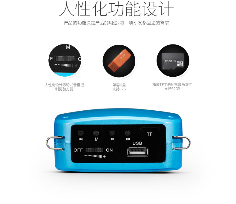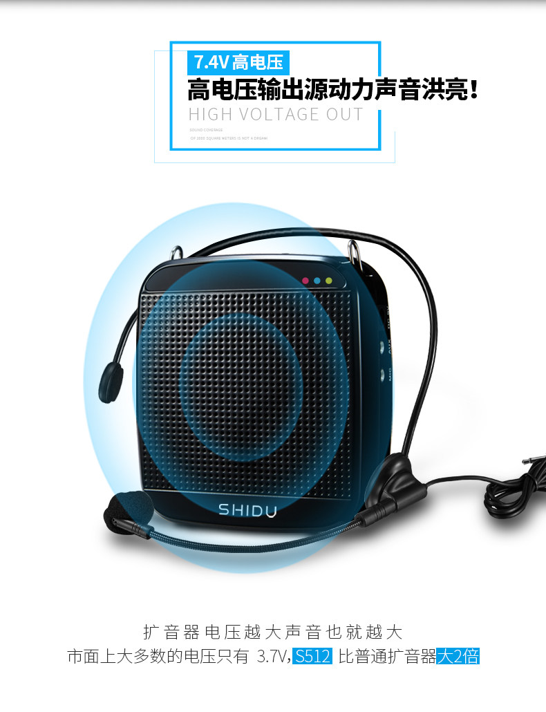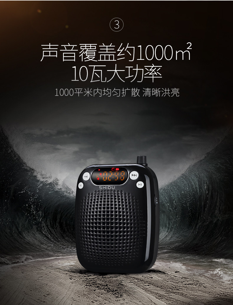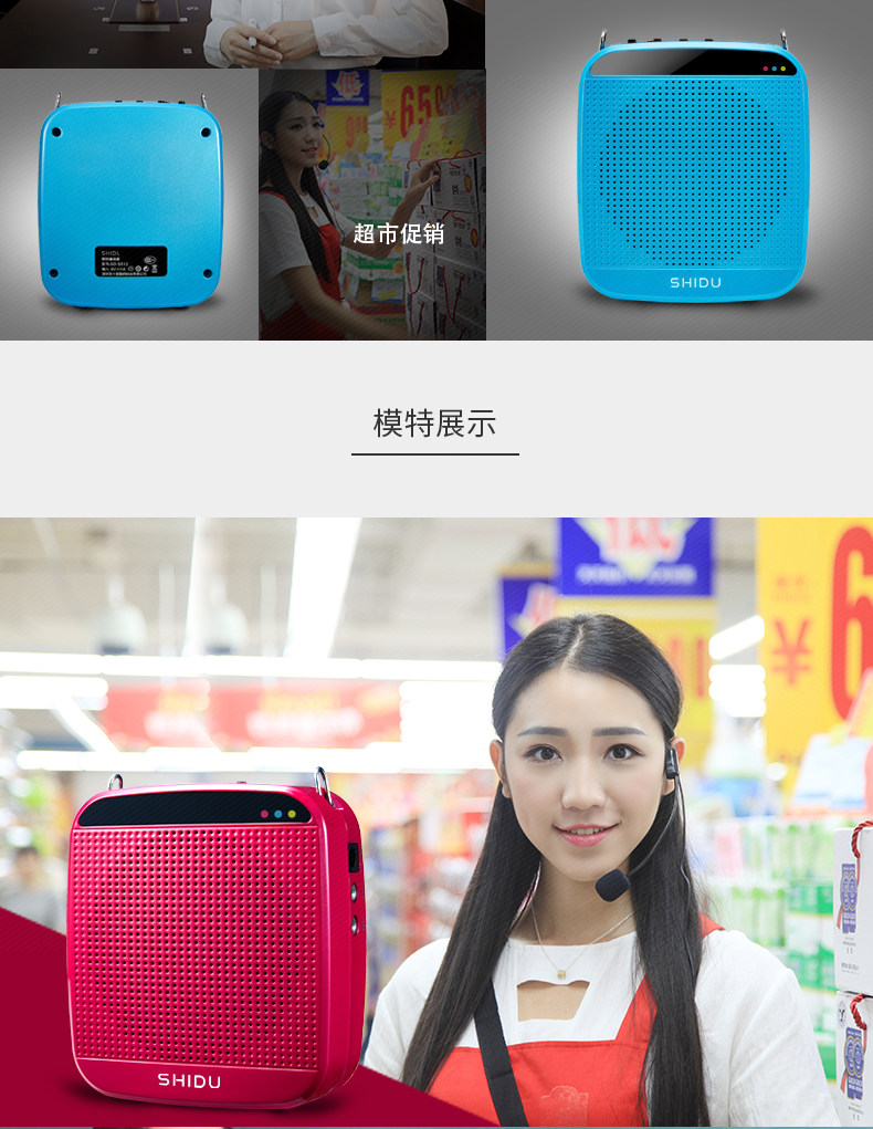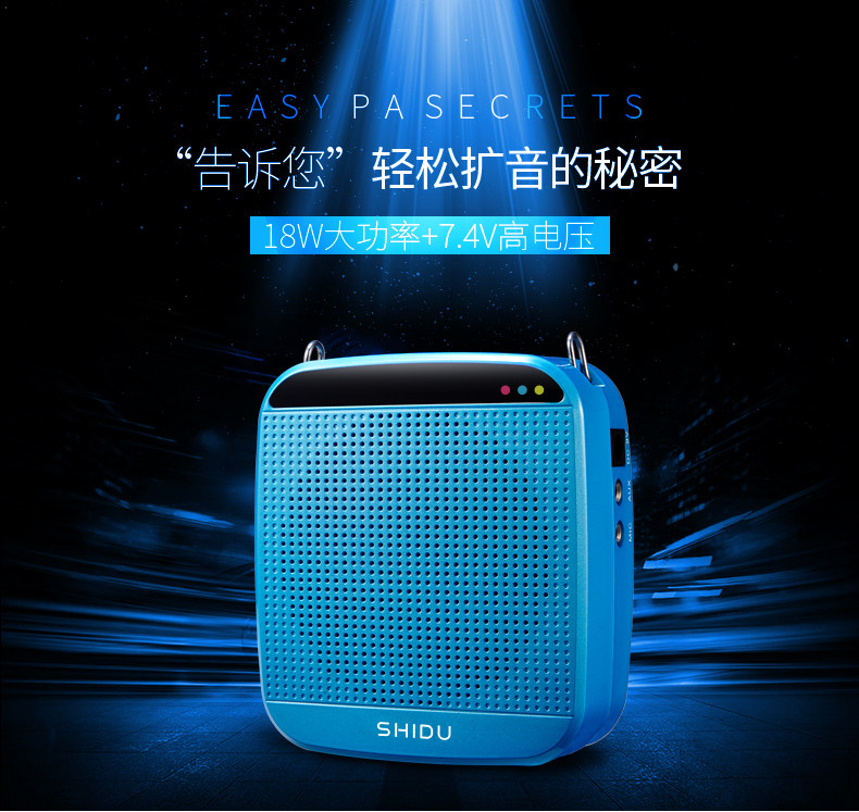 SHIDU has many models of voice amplifiers. The loudness of models with multiple functions (eg. radio) is just a fraction as compared to this model. All the resources in this compact amplifier are dedicated to producing loud and clear voice amplification. This is the only amplifier you need for indoor classrooms, large crowds or even outdoors!