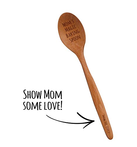 - QUALITY - Text and accents are laser printed to a wooden baking spoon to ensure the highest quality possible. Our spoons are sturdy but not heavy and will match any kitchen’s décor. Handle reads “I Love You Mom” to let everyone know who baked that delicious pie.