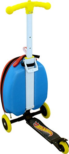 -. Feature : Compact lage case and three wheel foldable scooter coverts from rolling bag to scooter / Perfect for traveling & school / Features Hot Wheels design