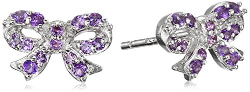 Girls' Petite Sterling Silver African Amethyst Bow Stud Earrings and 16" Pendant Necklace Set