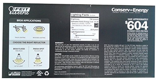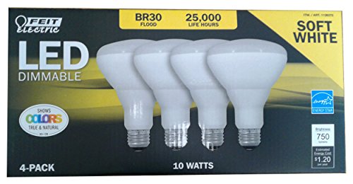 Feit LED Dimmable BR30 Flood Soft White Bulbs 65 Watts, Used 10 Watts, 4 Pack