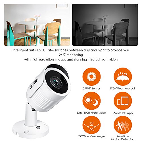 (1) Remarkable H.264/H.265 video compression,superior HD 1080p (2MP) Video Resolution,100ft Long Night Vision with 2PCS 42μ Big IR LED lights,wide 72 degree Viewing Angle,IP66 Level waterproof steady aluminum case