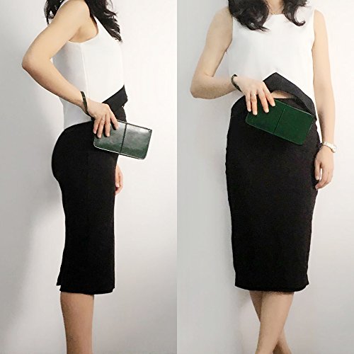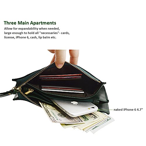 Belfen® [Soft leather] [Dark green] Smartphone zipper wallet organizer with Credit Card Holder/Cash pocket/Wristlet- [Up to 6 x 3.1*0.5 Inch Cellphone]