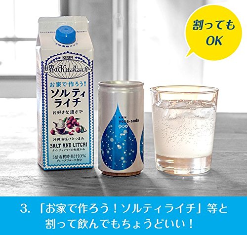 そのまま飲んでも、「お家で作ろうソルティライチ」等で割って飲んでもヨサソーダ。缶のデザインは、炭酸の発泡を滴の中に表現し、滴と滴の間にグラスのモチーフを表現しました。