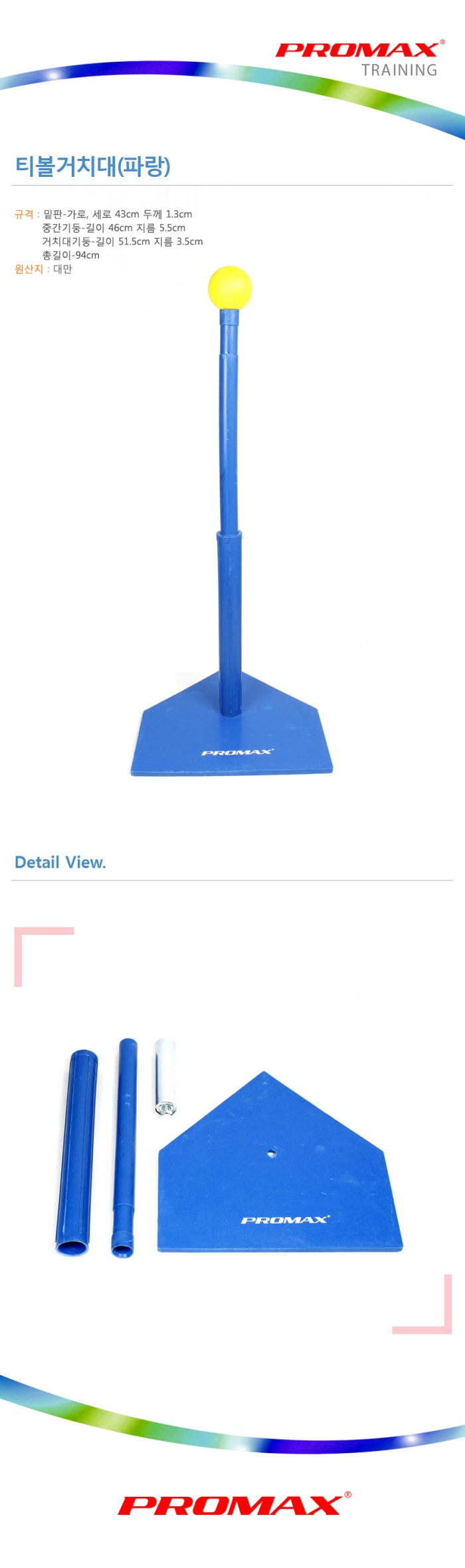 - 크기/중량밑판:가로 세로-43cm 두께-1.3cm/중간기둥:길이-46cm 지름-5.5cm/거치대기둥:길이-51.5cm 지름-3.5cm/총길이-94cm
