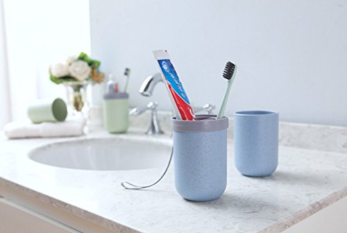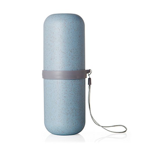 1Pcs Wheat Stalk Wash Gargle Cup Toothbrush Toothpaste Case/Holder/Container Storage Box for Travel and Outdoors (Blue)