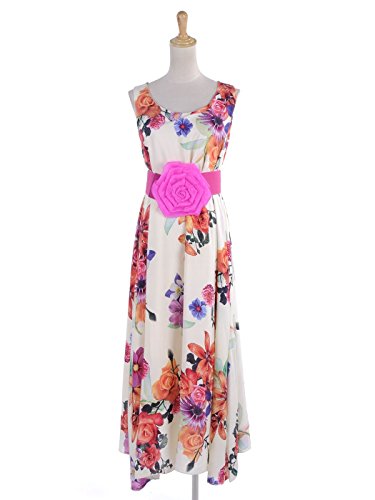 Anna-Kaci S/M Fit Multicoloured Tea Party Floral Print Wide Flower Belt Dress
