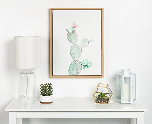 Kate and Laurel Sylvie Prickly Pear Cactus Natural Framed Canvas Wall Art by Simon Te Tai