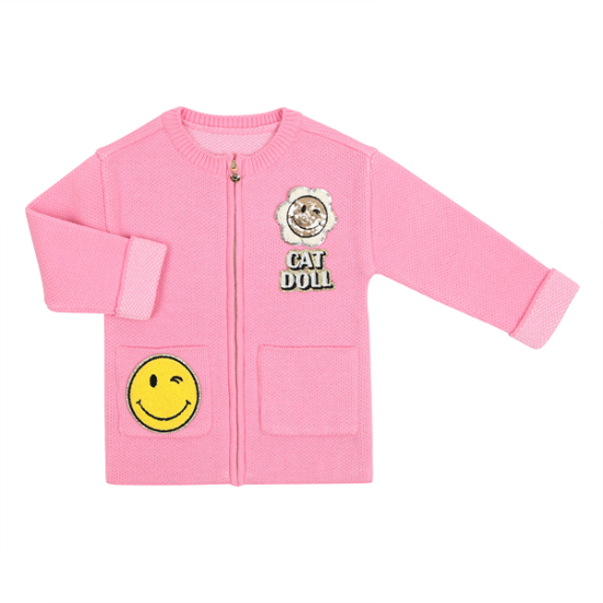 상품설명 핑크 스마일 패치 집업 가디건입니다. 울이 30% 함유되어 있어 보온성이 좋구요. 지퍼 처리로 편안하게 오픈, 클로징 할수 있어요. 빅 포켓에 들어간 유니크한 스마일 캣돌 와팬으로 엣지를 더한 제품입니다.