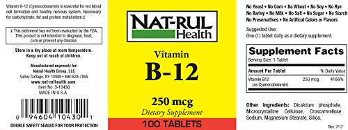 -. Title : Nat-rul B-12 250mcg 100 Tablets - 3 PACK