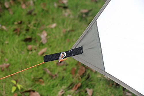 Made of Oxford Fabric + silver coated fabric, this rain fly tarp offers long-lasting wear with good tear-resistance and excellent waterproof capabilities. Providing generous protection from wind and rain; Anti-uv.