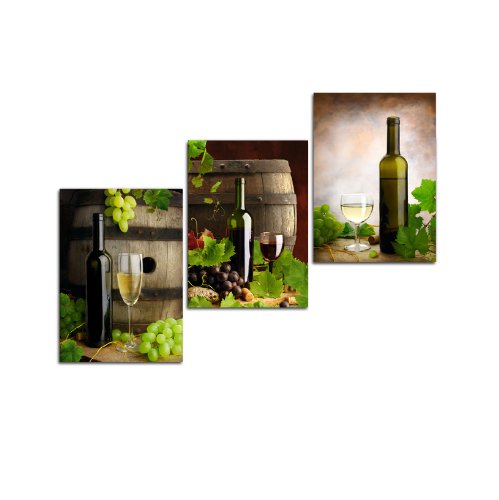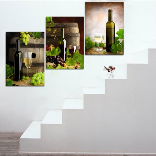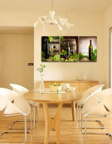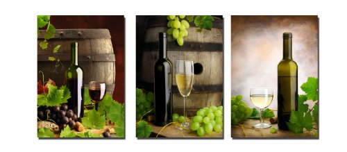 -. Title : Wieco Art 3 Panels Bottles and Wine Canvas P.R.Ints Modern Canvas Wall Art for Home Decoration