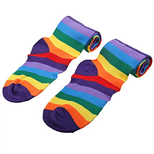 Package Including Pair * Rainbow Strips Leg Stocking Colorful Thigh High Socks for Women Girls 0