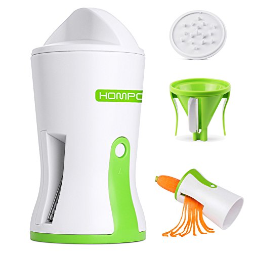 Spiralizer Vegetable Slicer, HOMPO Handheld Spiralizer Peeler, Zucchini Spaghetti Pasta Maker with 2 Blade