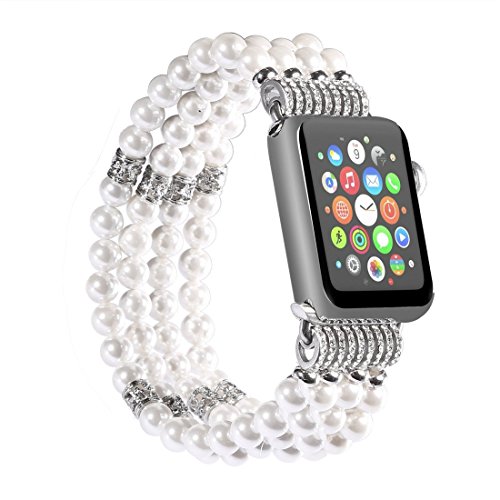 -. Title : TRANSHARE Handmade Beaded Faux Pearl Elastic Replacement Band with Metal Adapter Clasp for Apple Watch Series 3, Series 2, Series 1, Sport, Edtion