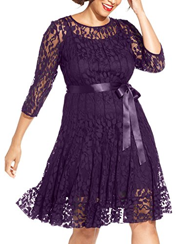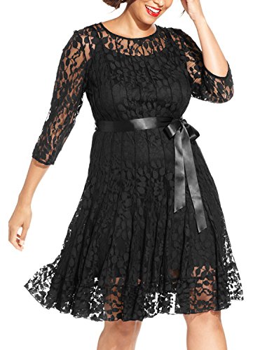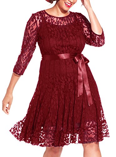 Nemidor Women's Illusion Floral Lace 3/4 Sleeves Plus Size Cocktail Dress