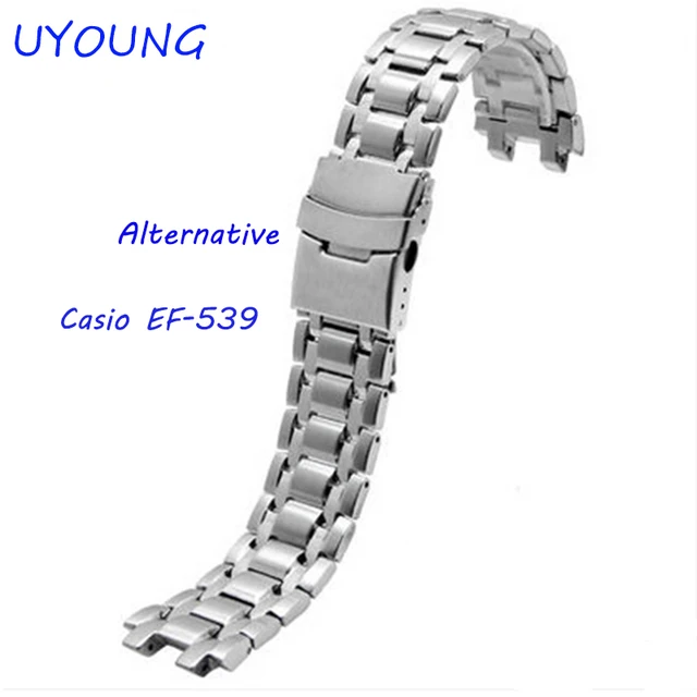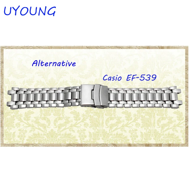 Uyoung 손목 casio ef-539 단단한 스테인레스 스틸 시계 밴드 팔찌 시계 액세서리 실버 스트랩