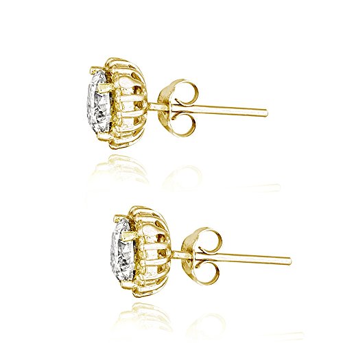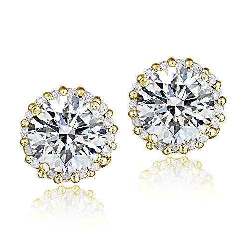 Sterling Silver 100 Facets Cubic Zirconia Halo Stud Earrings