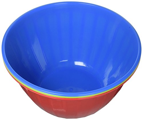 3-Serving Bowls Reusable Hard Plastic Party and Luncheon Tableware, 3 Assorted Fun Colors