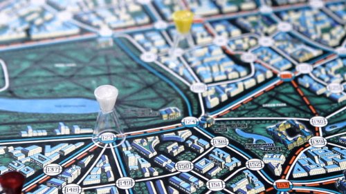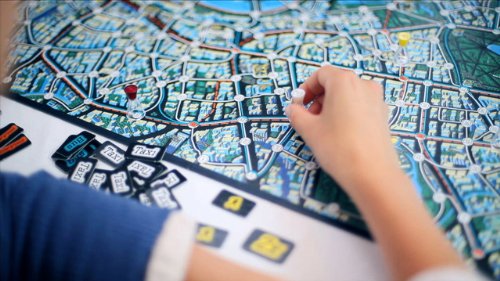 ![]() The game board features London's Transportation network - taxis, buses and underground trains - that the detectives must travel to find Mister X®. |