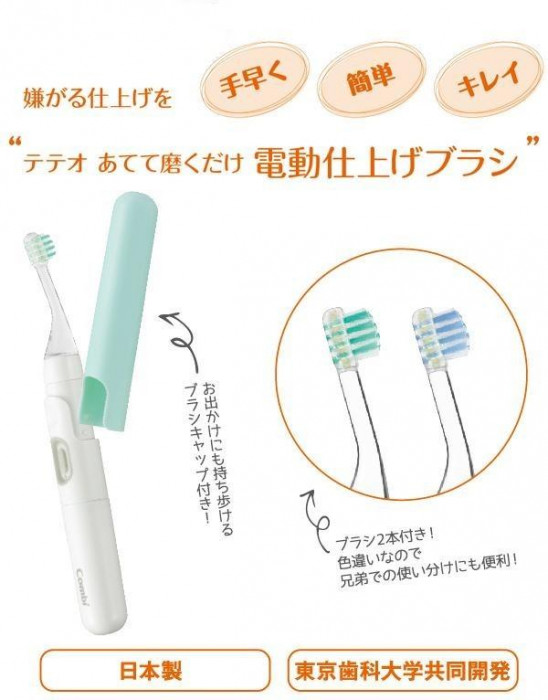 歯科器具と同じ15度ななめネックの電動仕上げブラシです。お得な替えブラシ2本付き!色違いなので、兄弟での使い分けにも便利♪ |