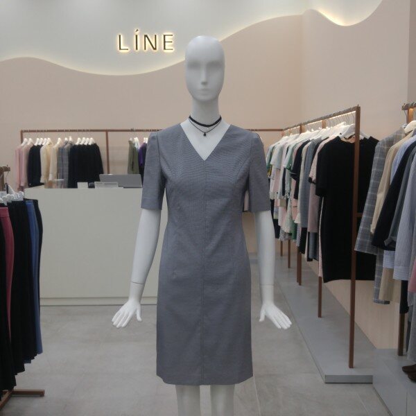 기본정장 원피스입니다. 브이? ?선에 네크리스로 포인트를 주시면 단아하게 연출하시기 좋아요. 그레이체크컬러는 상세컷사진이 실사에 가깝습니다.